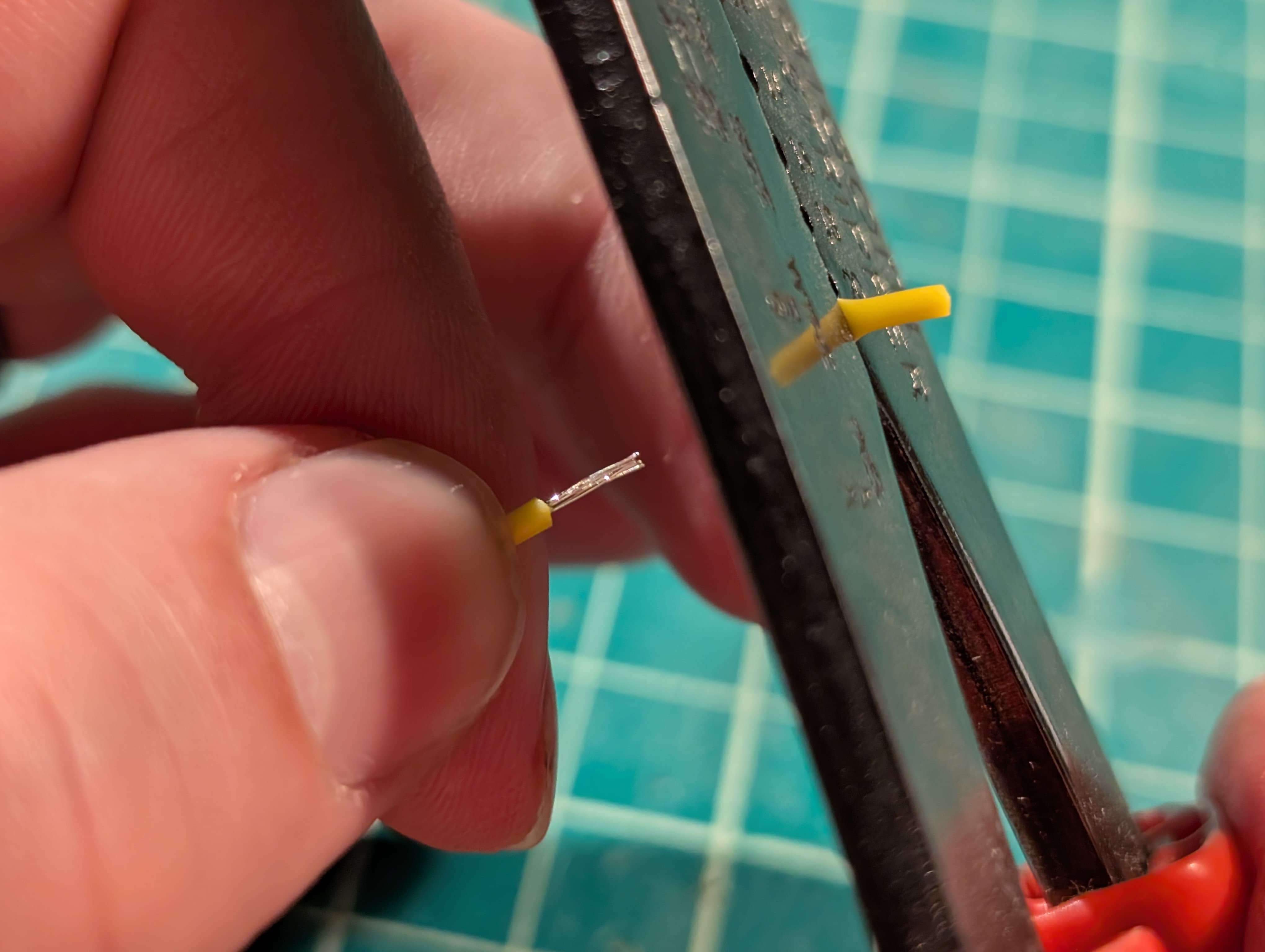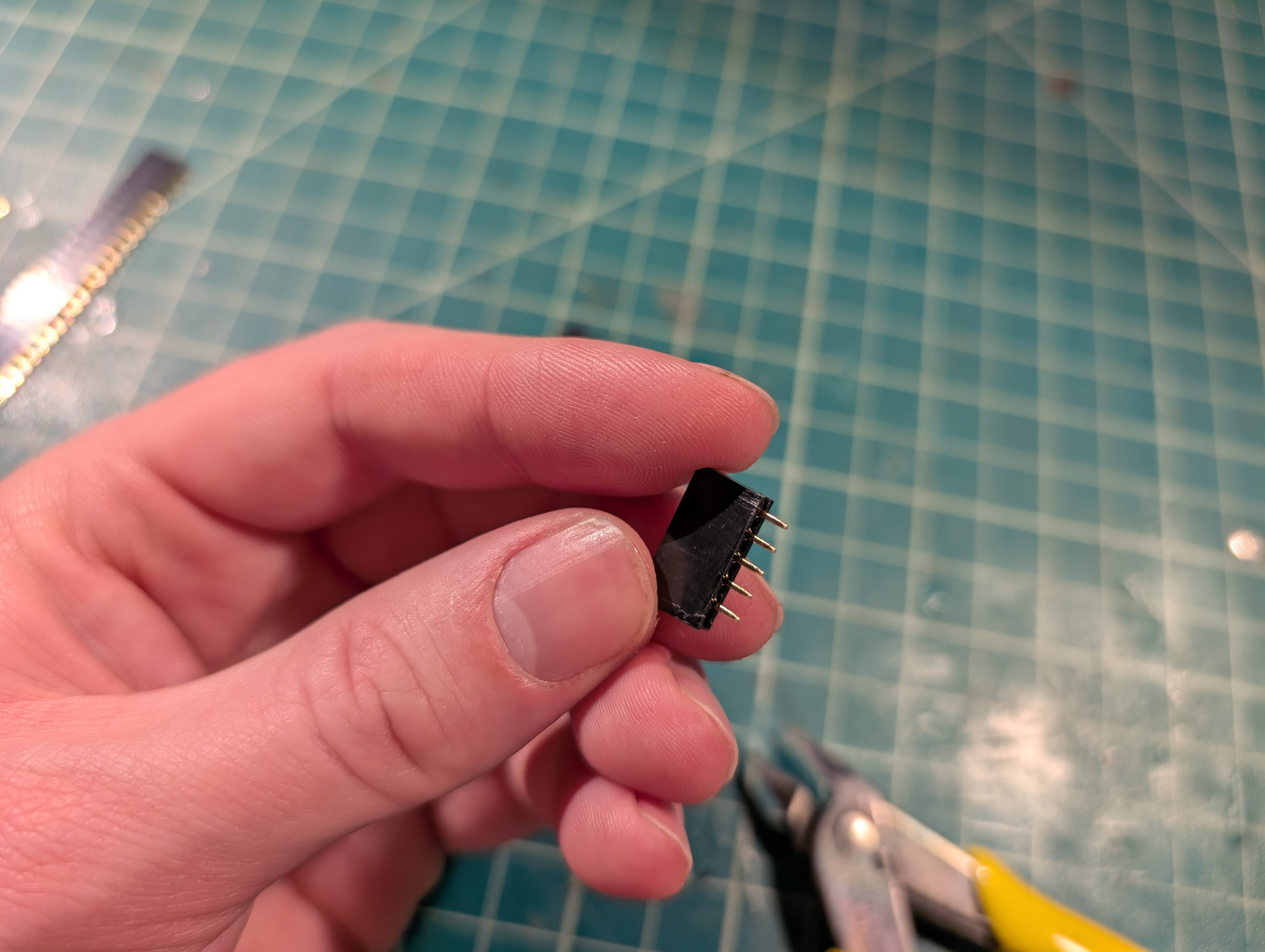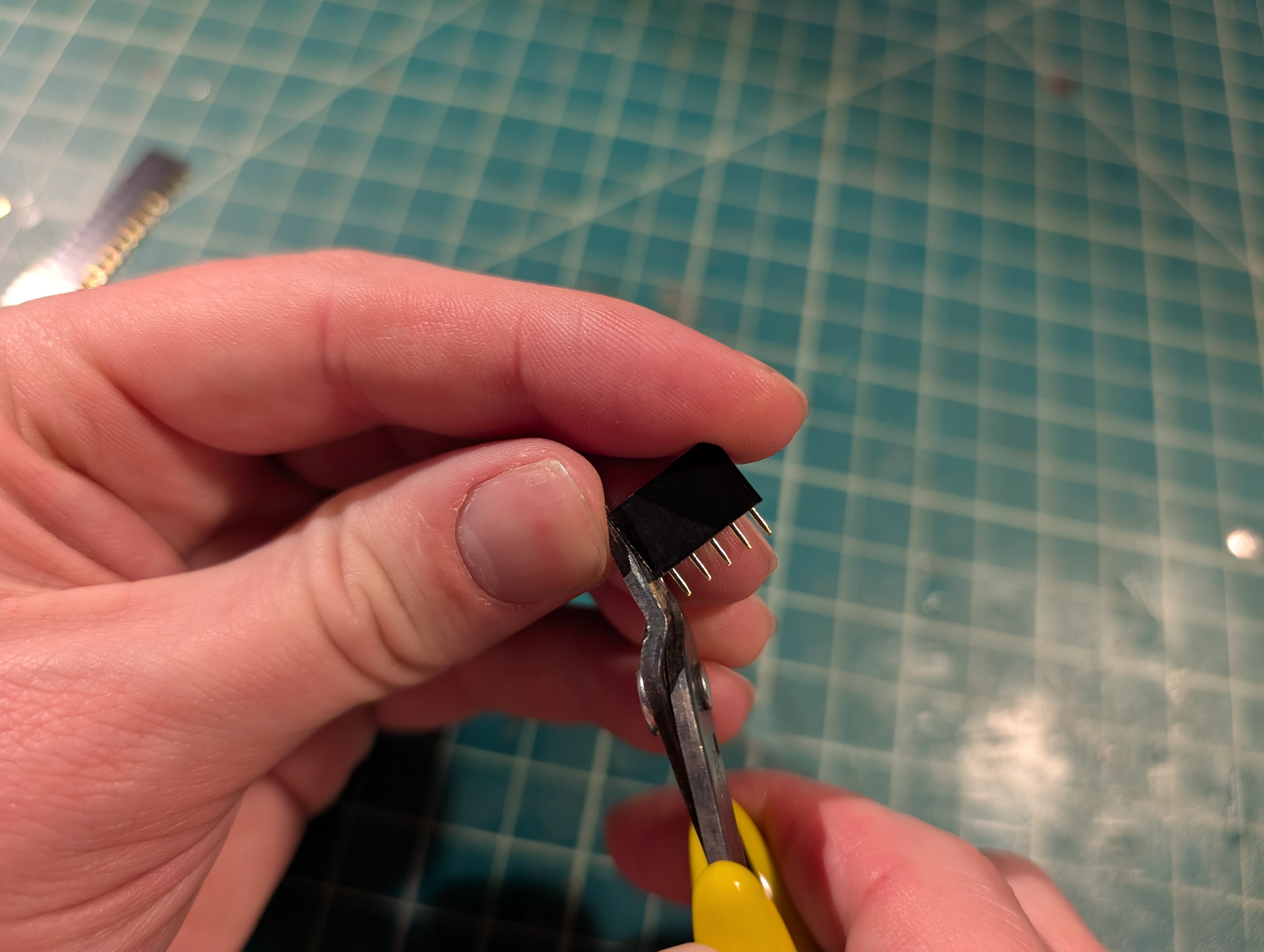 Once its cut, you can clean up what remains of the 6th pin. But do be careful to not snip too close to the pins you need. If you do, it could ruin it. Its better to leave excess! See how the clean up is done below.