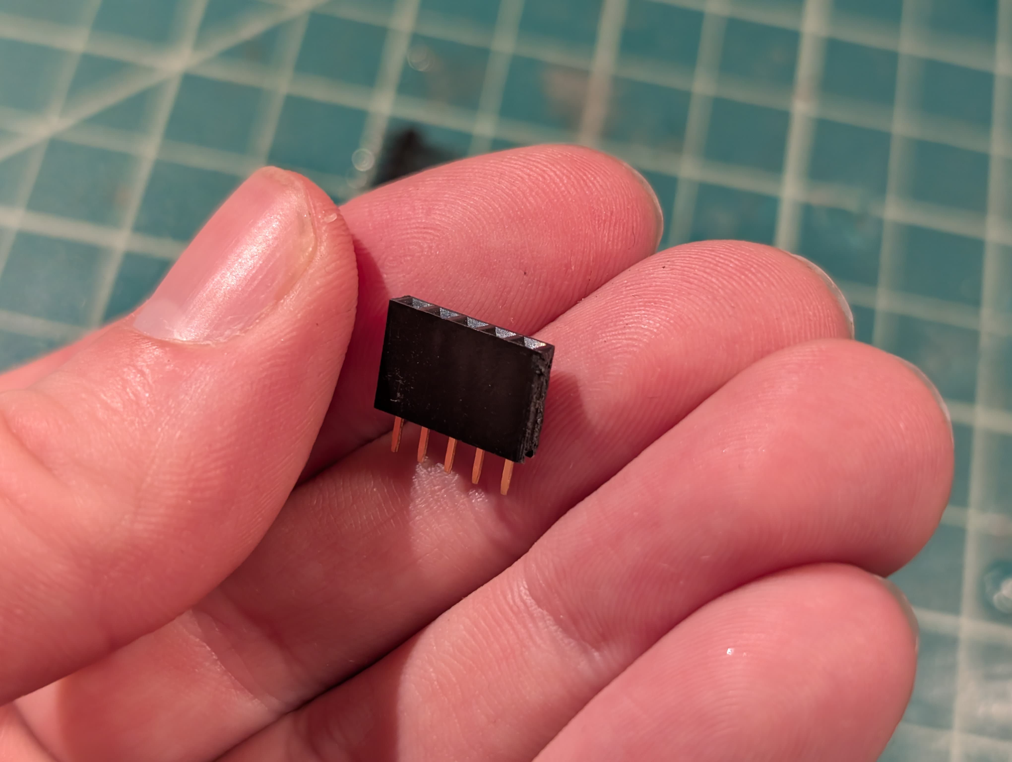 Unfortunately, we have to sacrifice a pin to cut the female header. So cut right on top of the 6th pin as seen in the photo below.